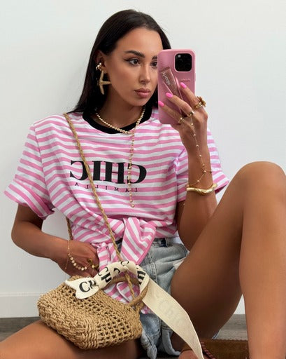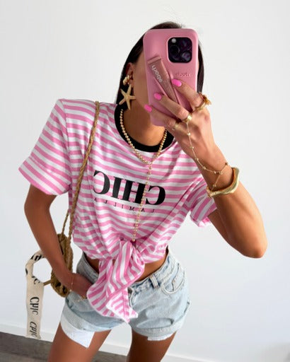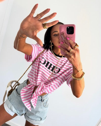 Bluzka z wiązaniem La Milla - różowo-białe paski