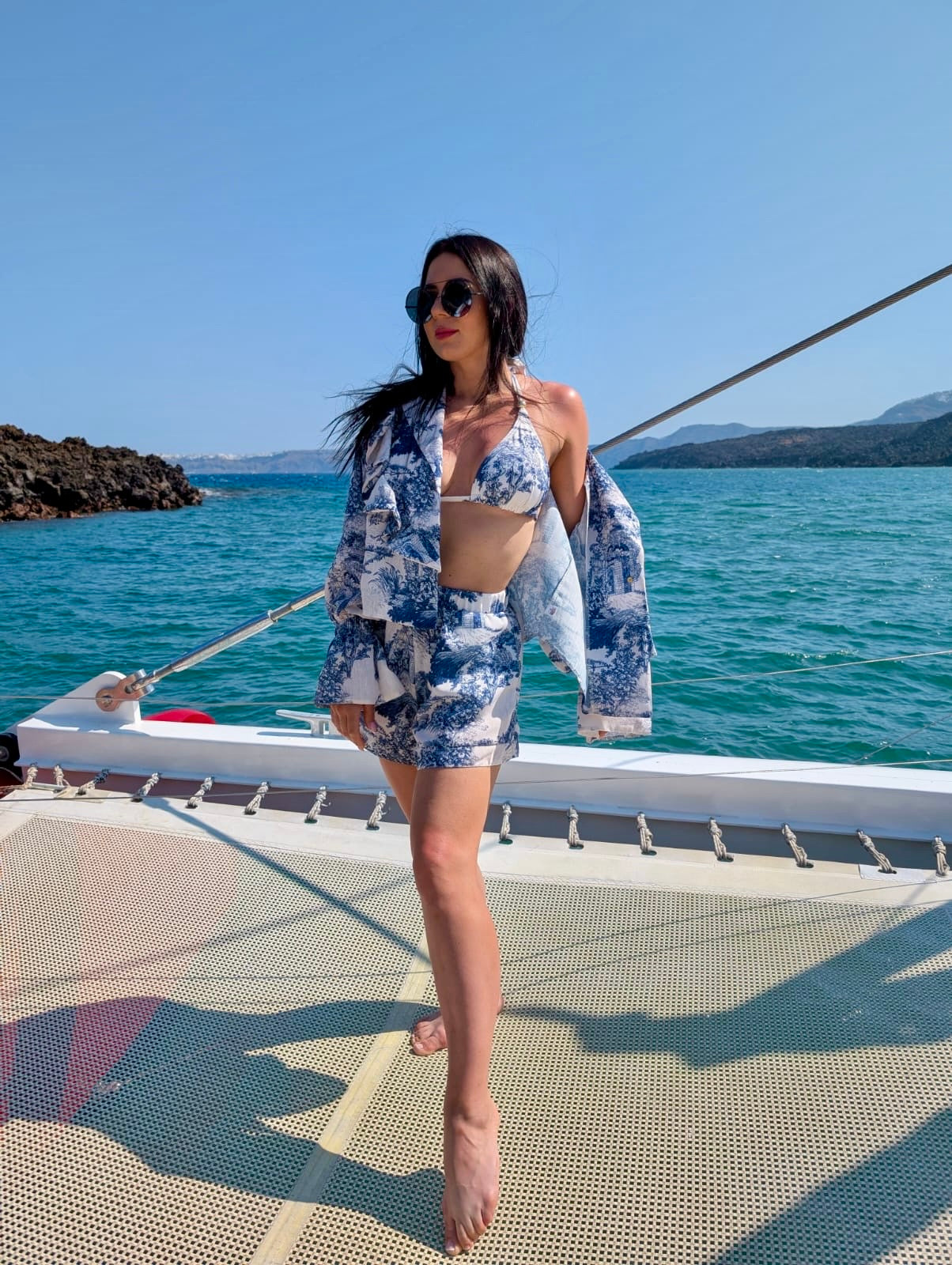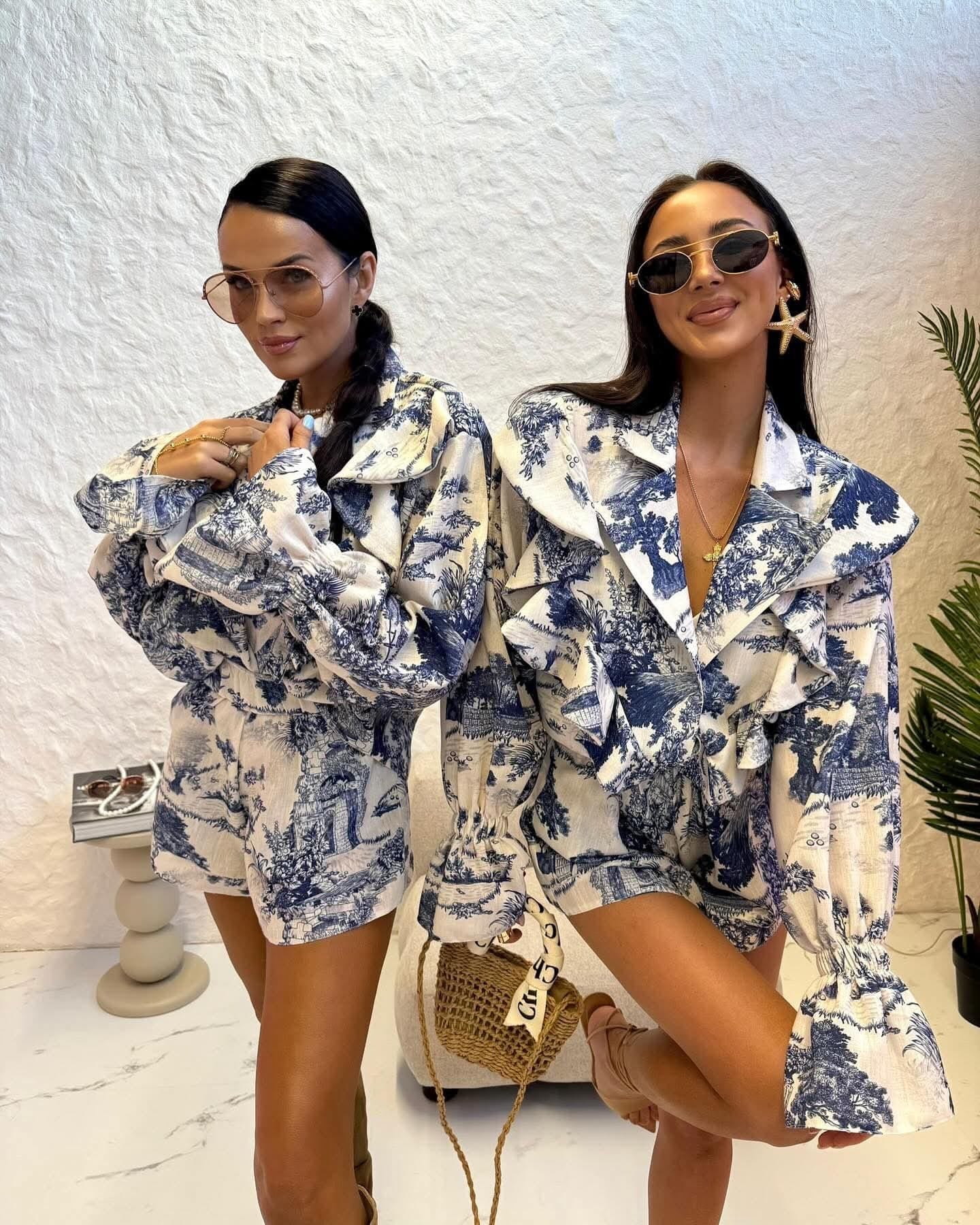 Komplet składający się z koszuli i spodenek. Przepiękny print nadaje całości letniego charakteru.