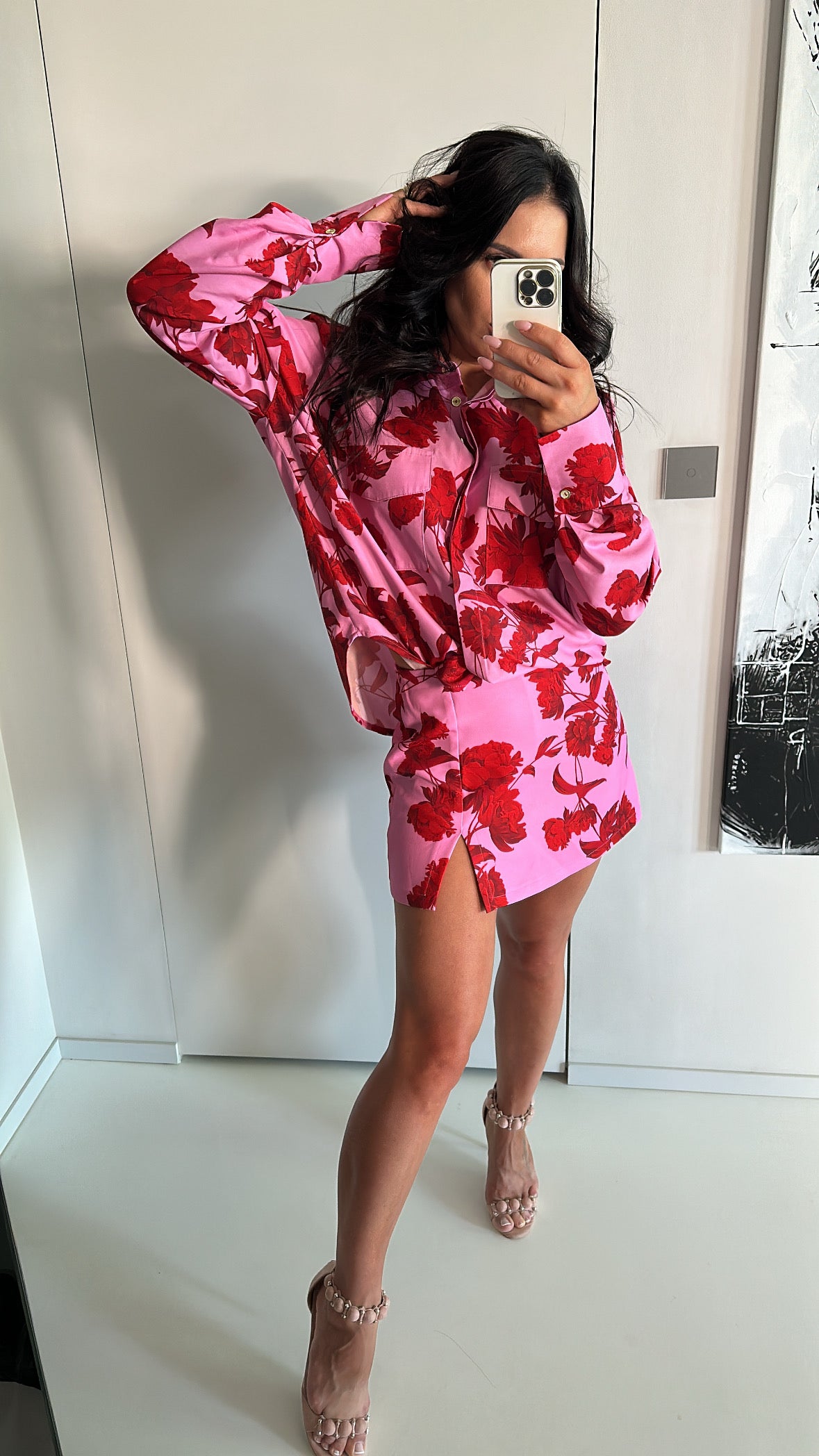 Koszula w rozmiarze uniwersalnym. Połączenie różu oraz czerwieni.