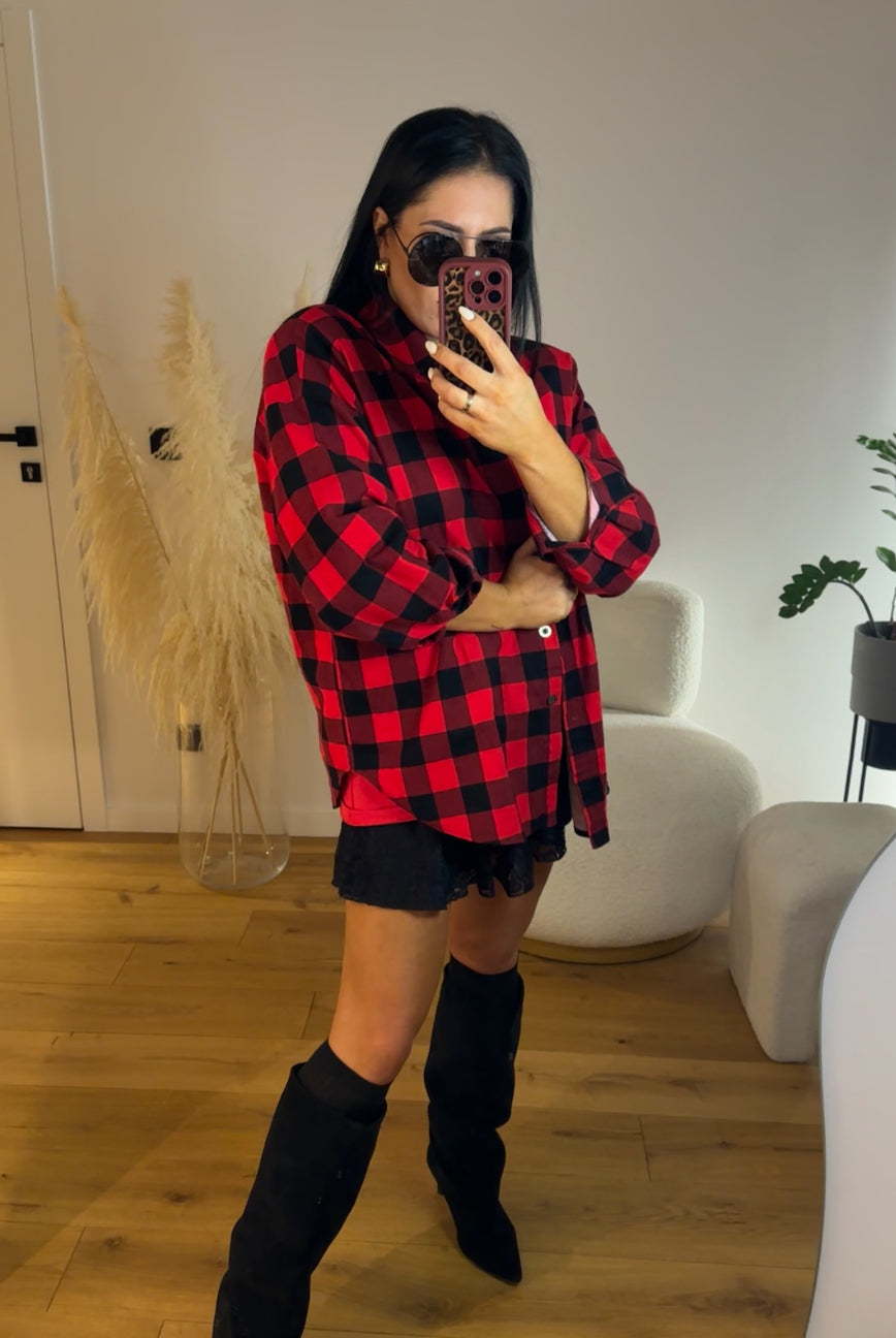 Koszula w kratkę od LaMilla producent. Ponadczasowe połączenie czerwieni i czerni.