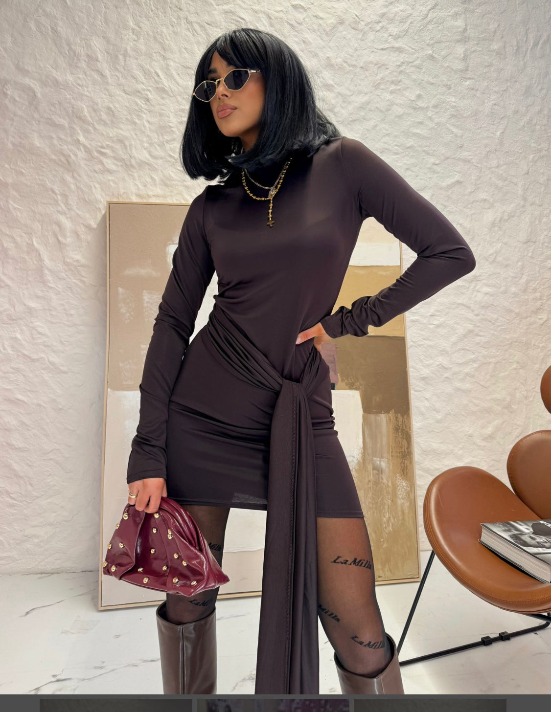 Krótka sukienka z wiązaniem LaMilla - brązowy